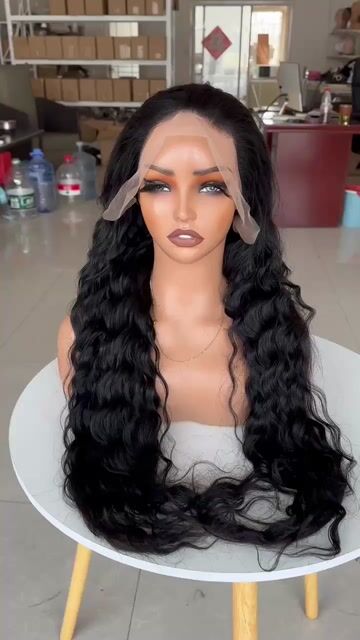13x6 Full Lace Frontal Wig Deep Wave Wig 34inches Natural Black Hair Pre Plucked Human Hair Wig